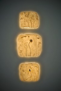 “My work has evolved from the tradition of nature printing – the initial impressions in clay are a recording of time. My botanical castings reflect my desire to capture the ephemeral – they capture the progress of the seasons, marking the plants at the moment when they are most alive. Like a fossil of long-forgotten plants, each porcelain plaque is a ghostly vestige of time, an act of remembering: a summer day in the garden with my mother, discussions about locations of new plants, the two of us dead-heading the perennials. I wish to distil the essence of the flowers, each one the memory of nature itself.”