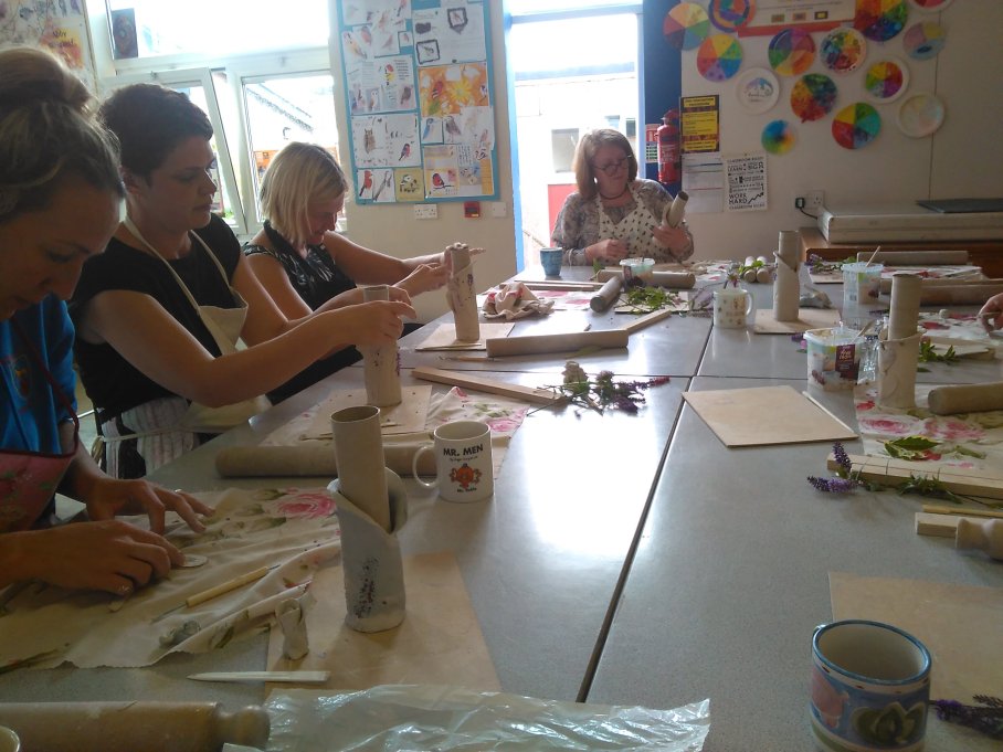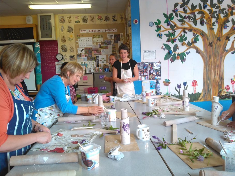 Staff at New Mills School have also been involved in the project. In July 2019 a group of 16 adults, from across all subject areas, came for an hour after school to create their own porcelain botanical vessel – the session had a lovely atmosphere and “was an enjoyable way to end the day”… I will definitely continue to organise more of these sessions!